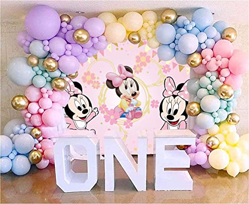 LXN Baby Mouse Sfondo Neonate Festa di Compleanno Sfondo Bel Mouse Rosa Fotografia Sfondo Baby Shower Dessert Decorazione della Tavola Sfondo 1.5x0.9m