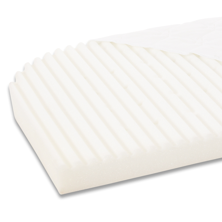 La struttura del materasso gioca un ruolo importante nel ritmo naturale del sonno del vostro bambino. Soprattutto, l'umidità causata dal sudore notturno deve essere rimossa efficacemente. Il materasso babybay ® KlimaWave® con i suoi canali climatici verticali nel nucleo in gomma piuma comfort, perfettamente abbinato alle fessure di ventilazione della superficie di sdraio babybay ®, garantisce un'elevata circolazione dell'aria. Il contorno d'onda sulla superficie del nucleo in schiuma comfort offre un comfort ottimale e una ventilazione orizzontale supplementare. L'apporto ottimale di ossigeno impedisce l'accumulo di calore. La copertura climatica offre un'efficace ed affidabile protezione igienica contro l'umidità, ma è comunque permeabile all'aria. Non è necessario un ulteriore strato idrorepellente! Il nucleo in gomma piuma si adatta idealmente alla forma del corpo del vostro preferito attraverso l'elaborata trapuntatura del rivestimento nelle stelle design, ha un effetto di sostegno e garantisce così un sonno profondo, lungo, riposante e onirico. E' cosi' che si sente il tuo bambino. Il rivestimento può essere facilmente rimosso in qualsiasi momento grazie alla cerniera a tre lati ed è lavabile fino a 60 °C. Tutti i materassi sono testati per le sostanze nocive e hanno ottenuto il certificato Fiducia nel tessile secondo Ökotex Standard 100 Classe 1 per bambini (12.0.0.03346). Dettagli del prodotto: Dimensioni: 57,5 x 105 x 6 cm Materiale del rivestimento: 61 % poliestere, 39 % cotone Materiale di imbottitura: nucleo in gomme piuma comfort a poro aperto e traspirante con condotti verticali di condizionamento dell'aria che regolano l'umidità. Contorno d'onda per un comfort di sdraio ottimale e ventilazione orizzontale supplementare Copertina igienica traspirante, morbida, trapuntata e traspirante con funzione di protezione dall'umidità Adatto a chi soffre di allergie Rivestimento igienico con trapuntatura a stella Rimovibile grazie alla cerniera a tre lati Lavabile