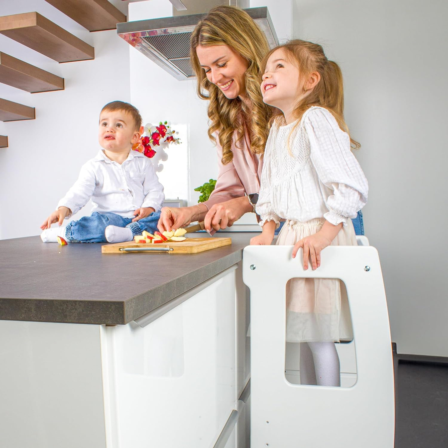 Dettagli del prodotto: Cresce con il bambino Altezza regolabile da 32,8 a 45,8 cm La piastra arrotondata consente un accesso comodo e sicuro Bordi delicatamente arrotondati Incavo per le maniglie della cucina Può essere ampliato con accessori come lo scivolo e le rotelle per un maggiore divertimento Adatto a un bambino che può stare in piedi e camminare senza aiuto (a partire da circa 12 mesi) Dimensioni e peso: Lunghezza: 42,5 cm Larghezza: 62,6 cm Altezza: 92 cm Capacità di carico fino a 100 kg Peso del prodotto: circa 10,78 kg Materiale e cura: Materiale: faggio massiccio, laccato Contenuto della fornitura Torre didattica Nota bene: lo scivolo, le rotelle, la tavola e le decorazioni non sono inclusi nella fornitura.
