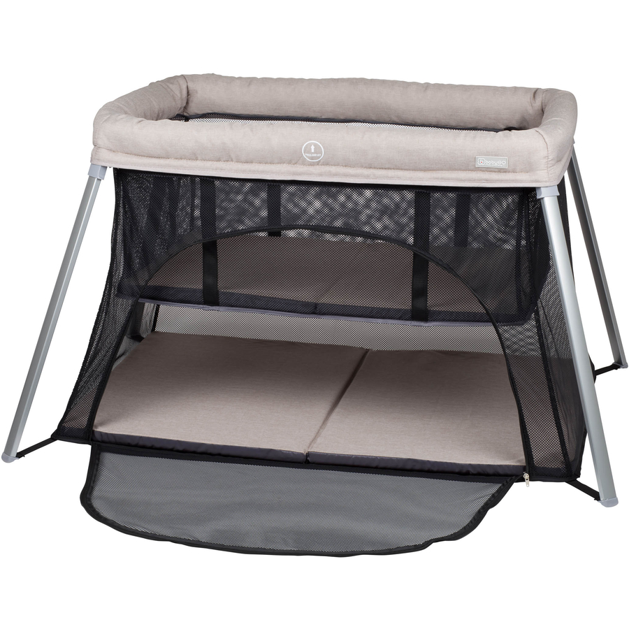 Il lettino da viaggio BabyGO Dreams II con due livelli in un design moderno è un lettino da viaggio confortevole e leggero, grazie al telaio in alluminio. Ideale sia per casa che per i viaggi. Il lettino da viaggio può essere ripiegato e aperto in poche mosse e può essere facilmente trasportato nella borsa di trasporto compatta in dotazione. Il letto è omologato anche come bagaglio a mano in aereo. I materassi per entrambe le altezze sono inclusi nella fornitura. Grazie ai due piani il bambino piccolo potrà dormire a livello dei genitori e giocare al piano inferiore durante il giorno. Il livello superiore ha dimensioni di 80 x 60 cm. Quello inferiore di 118 x 81 cm. La parte frontale grazie alla zip di apre e permette una comoda entrate e uscita a carponi dal lettino. I rivestimenti dei materassini e la borsa da trasporto possono essere lavati in lavatrice. Il lettino riposto nella sua borsa da trasporto misura solo 59 x 48 x 17 cm. Altri dettagli del prodotto: 4 gambe di alluminio Inclusi 2 altezze con materassini coordinati 2 materassi da viaggio Altezza lettino: 67 cm Borsa per il trasporto inclusa Design moderno Rivestimenti sfoderabili e lavabili Il seggiolone rispetta le norme di sicurezza attuali DIN EN 716. Dettagli tecnici: Dimensioni lettino: 68 x 60/100 x 50/80 cm Peso: 5 kg