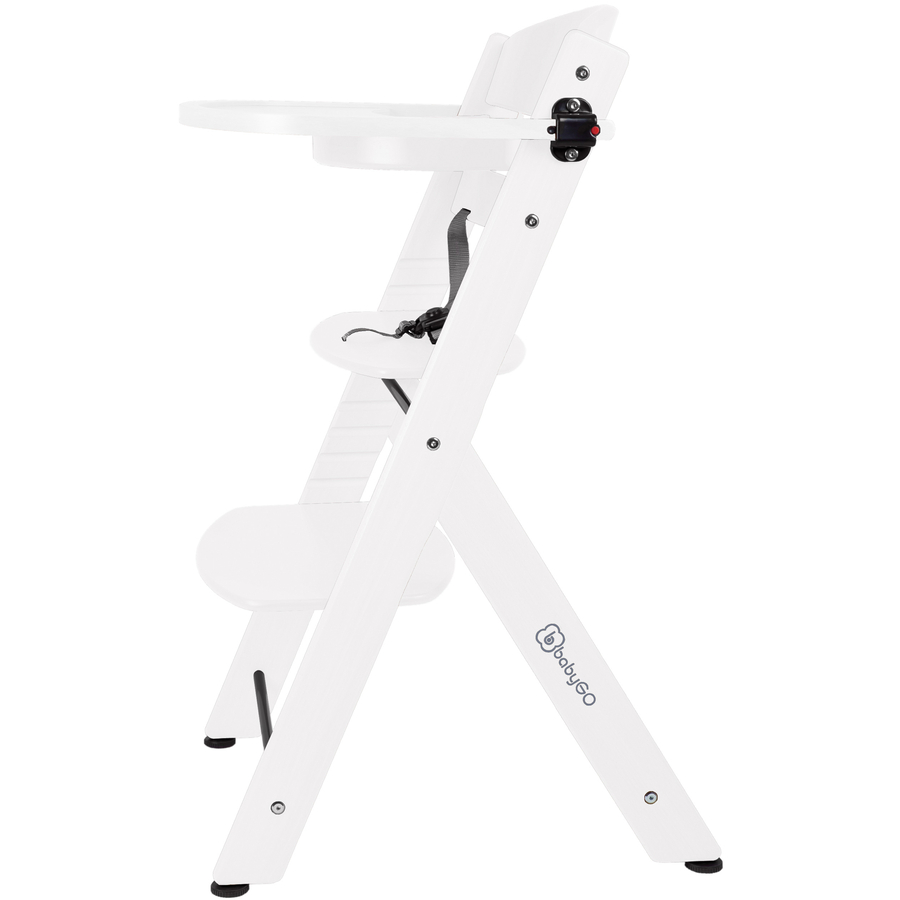 Dettagli del prodotto: Seduta e poggiapiedi regolabili in altezza Imbracatura di sicurezza a 3 punti secondo i più recenti standard di sicurezza Barra anteriore di sicurezza Materiale e cura: Materiale: legno massiccio di faggio Dimensioni e peso: Dimensioni (altezza x larghezza x profondità): 90 x 46 x 54 cm Profondità del sedile: 41 cm Peso: 5,6 kg Incluso nella consegna: babyGO Seggiolone Family XL bianco