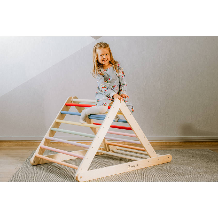 Dettagli del prodotto: Età: da 3 anni Il triangolo di arrampicata è il punto di partenza perfetto per i piccoli scalatori. Realizzato in legno robusto e sostenibile, offre stabilità e sicurezza durante l'esplorazione. I bordi delicatamente arrotondati e la struttura resistente assicurano anni di divertimento nell'arrampicata. Non solo promuove le capacità motorie, ma anche la fiducia in se stessi, consentendo ai bambini di testare i propri limiti fisici in modo sicuro. Dimensioni e peso: Dimensioni assemblate (lunghezza x larghezza x altezza): 120 x 74 x 80 cm Peso: 10 kg Materiale e cura: Materiale: legno massiccio Cura: Pulire con un panno umido Avvertenze e istruzioni di sicurezza: Attenzione: i bambini non devono mai essere lasciati incustoditi quando si arrampicano. Un adulto dovrebbe essere nelle vicinanze per poter intervenire in caso di emergenza o se il bambino ha bisogno di aiuto.
