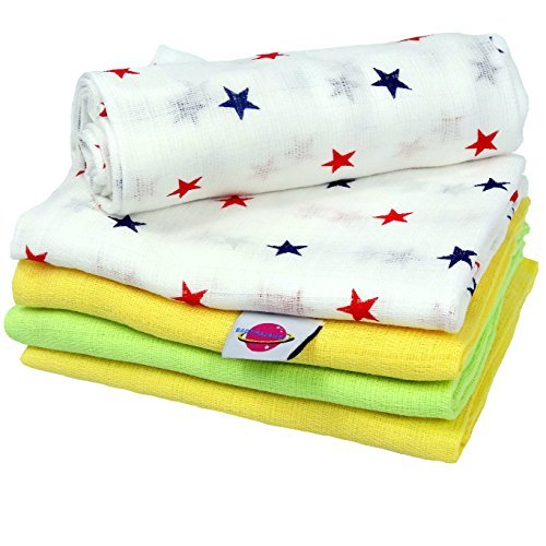 Babymajawelt - Quadrati di mussola stampati 70/80 cm, confezione da 5