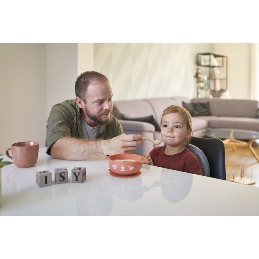 Dettagli del prodotto: Ideale per bambini tra i 15 e i 24 mesi Set completo per imparare a mangiare con una ciotola e un cucchiaio Favorisce lo sviluppo della motricità fine Promuove l'indipendenza Ciotola in silicone particolarmente resistente che non scivola via grazie alla ventosa Ventosa con linguetta discreta per sganciare facilmente la ciotola Cucchiaio in silicone, un materiale particolarmente morbido e flessibile, delicato sulle gengive sensibili del bambino I componenti possono essere puliti sia in lavastoviglie che a mano Cucchiaio ergonomico e morbido Disponibile in 2 colori: cane blu e volpe terracotta Garanzia a vita - Termini e condizioni su www. babymoov .com Materiale e dimensioni: Materiale: silicone garantito privo di BPA e ftalati Dimensioni (lunghezza x larghezza x altezza): Ciotola: circa 16,3 x 12 x 5,3 cm Cucchiaio (lunghezza x larghezza): circa 14,2 x 2,1 cm Istruzioni per la conservazione e la cura: La ciotola è adatta al forno (max 230°) e alla lavastoviglie. La consegna include: 1x ciotola per porridge 1x cucchiaio