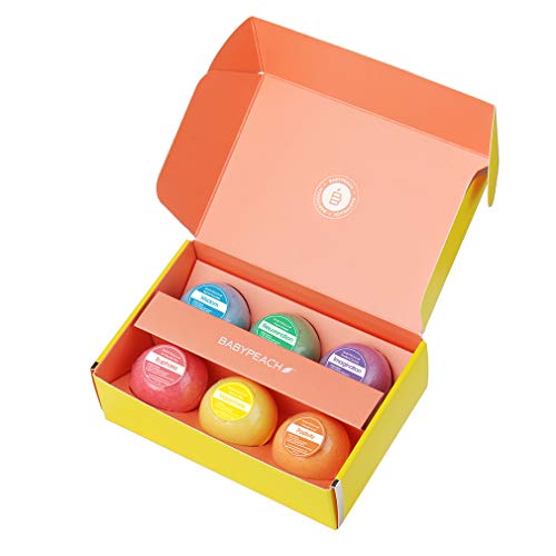 BABYPEACH Bombe da Bagno con Oli Essenziali, 6pzs Bombe da Bagno Effervescenti, Sali da Bagno Profumati