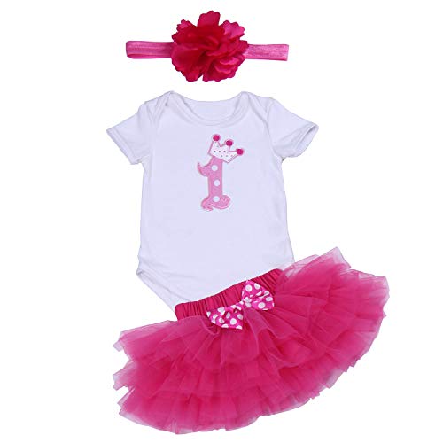 BabyPreg Bambine Tutu del Primo Compleanno con Set di archetti (9-12 Mesi, Rosa Caldo)