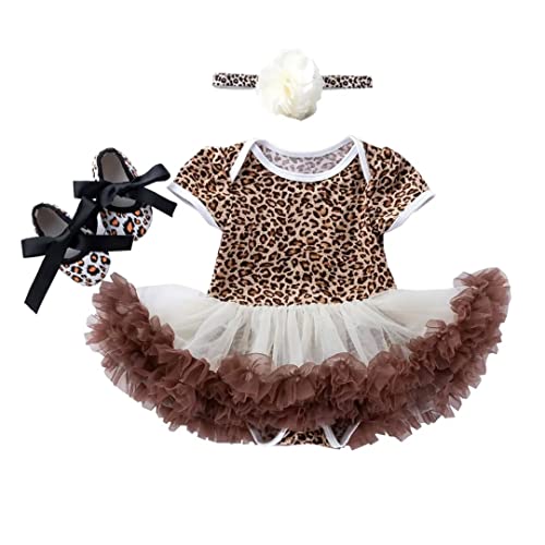 BabyPreg Infantile Bambino Leopard Zebra Stampato Vestito Cotone Tutu Dress Scarpe Fascia 3 Pezzi (12-18 Mesi, Marrone Leopardo)