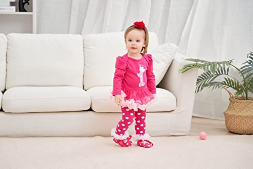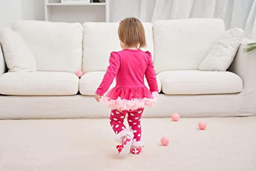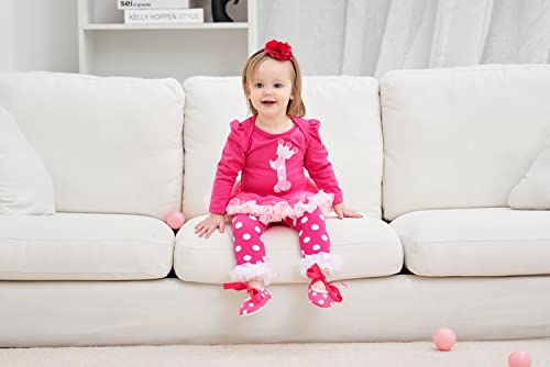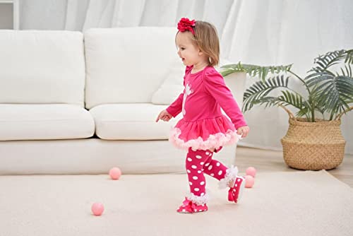 BabyPreg Pattini della Fascia del Vestito dal Primo Compleanno del Modello della Corona delle Neonate 4 Pezzi (9-12 Mesi, Rosa Caldo)