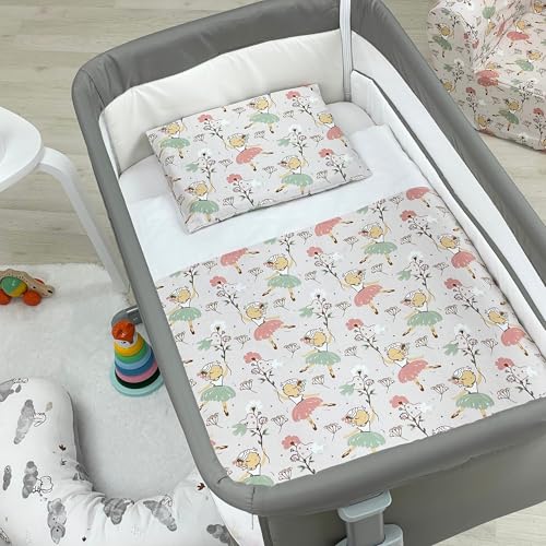 Babysanity Lenzuola Next To Me Compatibili 5 pezzi: Cuscino Neonato Federa Cuscino Piumino Copripiumino Lenzuolo Angoli per Culla Lettino Neonato Chicco Kinderkraft Cam Brevi (The Fairy's Balloon)