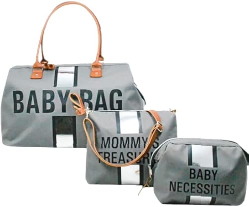 Babysi kids club Baby Bag 3 Set Exclusive Borsa per il cambio,Borsa per neonati,Borse mamma maternità Essentials,Mommy Lavoro e parto (Z1-Grey/Silver Stripes)