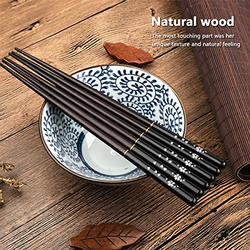 Bacchette di legno, TOTKEN 5 paia top grade stile giapponese Chopsticks riutilizzabili per sushi noodles con scatola regalo (nero)