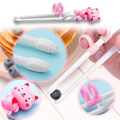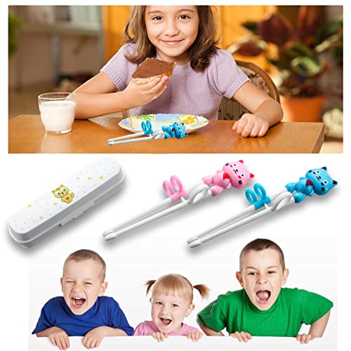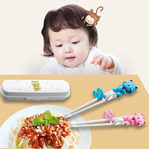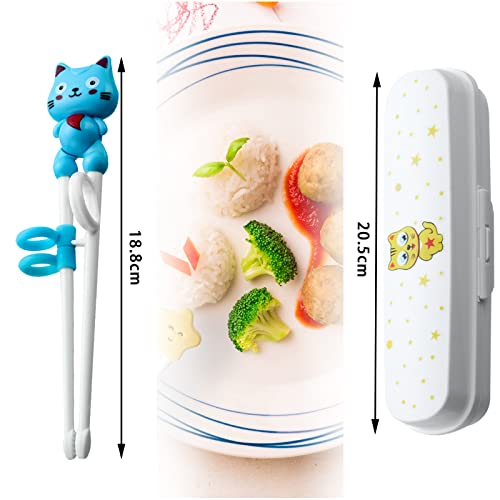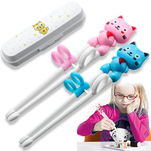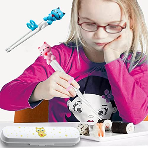 Bacchette, 2 Paia di Bacchette Assistenti Bacchette Bacchette Riutilizzabili, Adatte per Principianti, Anziani, Bacchette Cartone Animato con Scatola (Blu+Rosa)