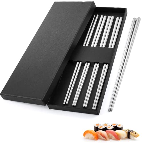 Bacchette Sushi Giapponesi Lavabili in Lavastoviglie 5 Paia Bacchette in lega Riutilizzabili Posate Asiatiche in Acciaio Inox