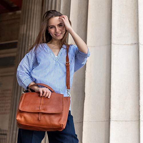 BACCINI Borsa porta pc vera pelle LORETTA grande I portadocumenti a tracolla portatile donna I borsa a spalla marrone fatta a mano