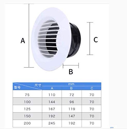Baceyong - Griglia rotonda per ventilazione interna, 75-200 mm