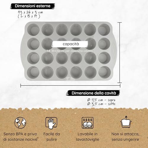 Backefix KOMFORT 24 mini teglia per muffin in silicone per piccoli muffin - 5,5x3,5x3cm | Stampo per muffin da 24 antiaderente in silicone, standard tedeschi, senza BPA, lavabile in lavastoviglie