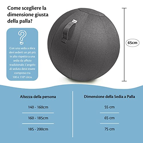 VARIETÀ DI COLORI - Migliora l'estetica della tua casa o ufficio con le palle da seduta in lino disponibili in una gamma di colori. Oltre all'ergonomia, la fitball 65 cm trasforma gli spazi, donando un tocco di stile alle aree di lavoro e living.
