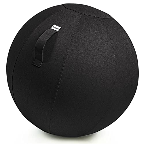 Backerz Palla per Sedersi 65cm - Palla Ginnastica PVC Anti-Scoppio, Portata 110kg - Base ad Anello in Gomma, Fodera in Lino - Ergonomica, Sedia da Ufficio e Yoga, per una Postura Corretta - Nero