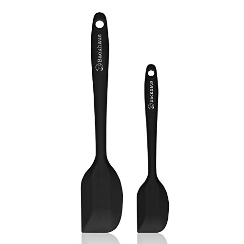 Backhaus ® Set Spatole in Silicone Platino Antiaderente con Nucleo in Acciaio, 2 Utensili da Cucina di qualità Professionale Resistente al Calore, Nero