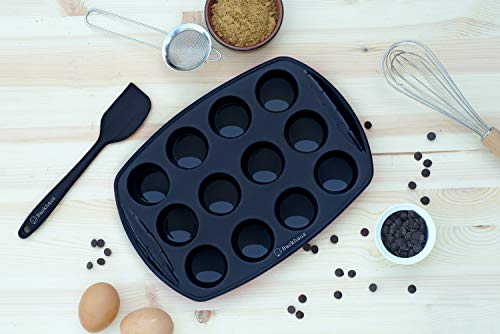 Backhaus Stampo per 12 Mini Muffins con Spatola - Teglie da Forno, Set di Pasticceria Antiaderente in Silicone Platino di qualità Professionale - Nero