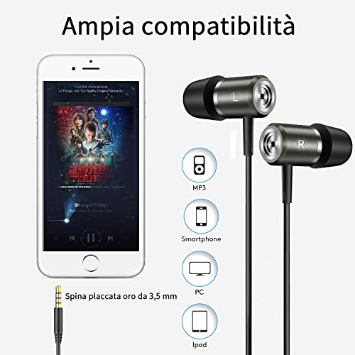 BACKWIN Auricolari, Cuffie in-ear con filo, Cuffiette con microfono, controllo del volume, isolamento acustico, suono guidato dai bassi, jack da 3,5 mm per smartphone tablet iPod iPad lettore MP3