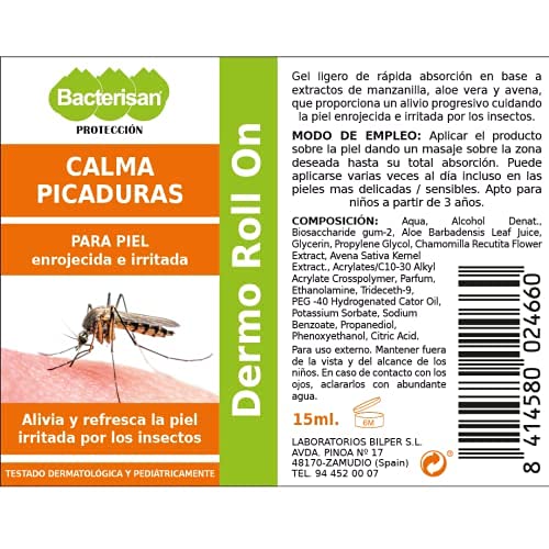 BACTERISAN Dermo Roll On, lenisce le punture d'insetto, allevia il prurito e lenisce la pelle, effetto rinfrescante, adatto a bambini e adulti 15 Ml, trasparente