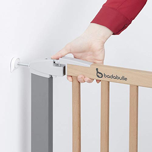 BADABULLE Cancelletto Safe & Lock legno metallo + 1 estensione da 18 cm, Per aperture da 95.5 a 99.5 cm