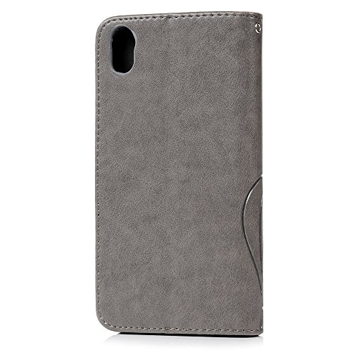 BADALINK Coque Sony Xperia M4 Aqua, Housse Étui Case de Protection en PU Cuir Flip Cover Bookstyle Support Fermeture Aimantée Portefeuille Cartes Slots Coloré Motif Papillon Gris