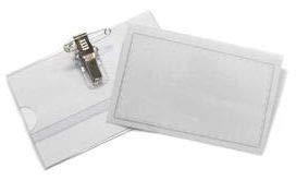 Portanome o portabadge in PVC trasparente con doppia funzione per poterlo utilizzare: clip a scatto o spilla in metallo.,, Dimensione: 9 x 5,5 cm, cartoncino incluso, clip e spilla in metallo, pezzi: 50