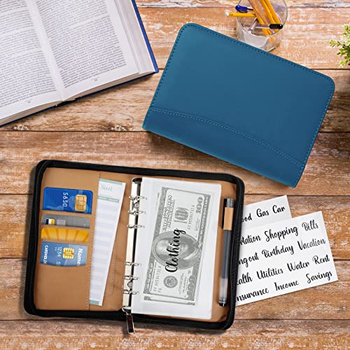 Badve A6 Budget Binder, A6 PU Raccoglitore Soldi Quaderni ad 6 Anelli con 14 Binder Tasche/12 Fogli di Bilancio di Spesa/4 Etichette Autoadesive per Budget Planner, Binder Money - Blu