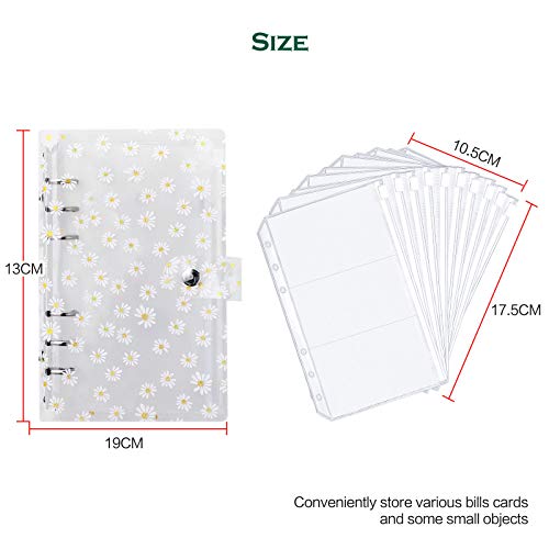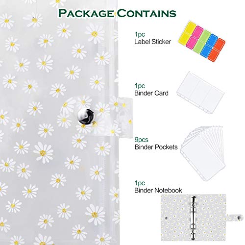 Badve PVC A6 Raccoglitore per Documenti Quaderno, Raccoglitore ad 6 Anelli con 9 Binder Tasche/ 1 Carte Raccoglitore/ 1 Etichette Autoadesive - Crisantemo