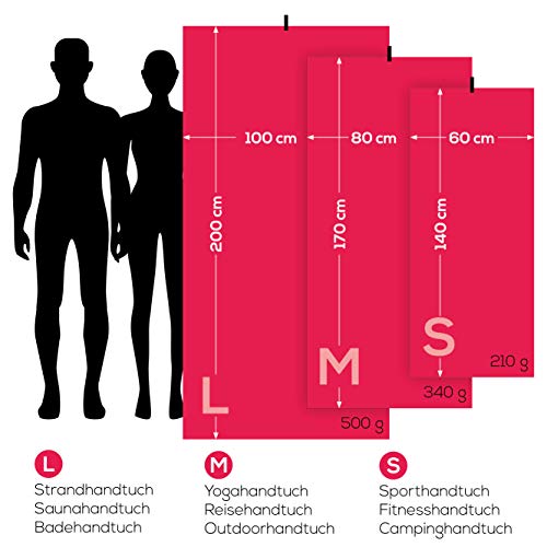 Travel & Beach Il nostro asciugamano in microfibra da 200 x 100 cm è abbastanza grande ed è adatto come telo da spiaggia, asciugamano da sauna, asciugamano sportivo, asciugamano da sdraio, telo da spiaggia e asciugamano funzionale.