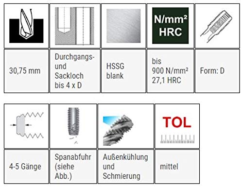 Utilizzo versatile - materiali facilmente smontabili fino a 900 N/mm2 - acciaio non legato e a bassa lega - per passaggio e foro cieco - per uso a mano e in macchina.