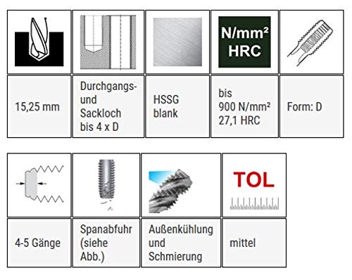 Utilizzo versatile: materiali ben frantumati fino a 900 N/mm², acciaio non legato e a bassa legatura, per foro di passaggio e cieco - per uso manuale e macchina.