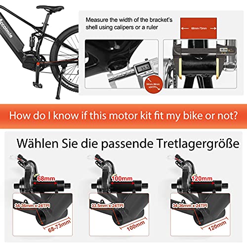 Compatibile con le varietà: dimensioni ridotte, ma adatto per mountain bike, bici da strada, pendolari. Il BBS BBSHD si adatta al 95% dei cuscinetti a pedale standard da 68 mm. Si prega di misurare la lunghezza e il diametro del movimento centrale sulla vostra bicicletta. Se non siete ancora sicuri che la vostra bicicletta si adatti al nostro kit motore centrale Bafang, vi preghiamo di inviarci una e-mail, allora il nostro tecnico può darvi consigli.