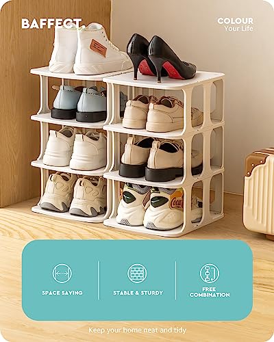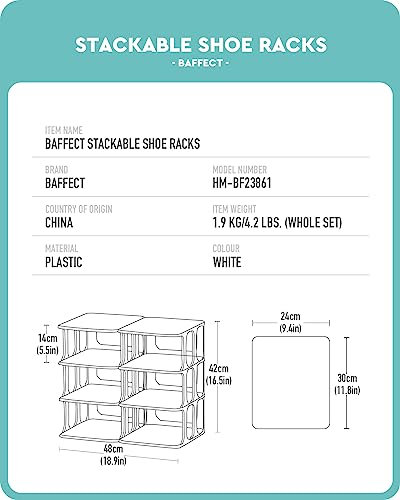 Baffect Organizer Scarpe, Organizzatori per Lo Stoccaggio delle Scarpe Combinabili in Modo Flessibile, Porta Scarpe in Plastica con capacità di 8 Paia per Armadi, Cabine, Ingressi (Bianco)