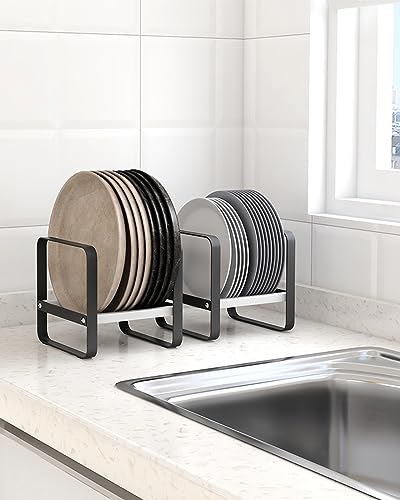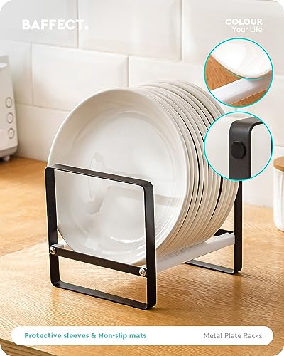 Baffect Rastrelliera per piatti in metallo da 2 pezzi, scolapiatti per piatti, stendino per piatti neri, supporto per portapiatti per armadi da cucina Piatto organizer piatto sottile