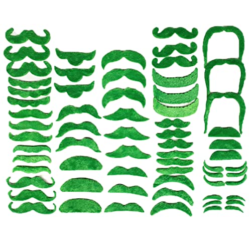 Set di 60 baffi finti verdi, 20 stili autoadesivi per barba finta, in peluche, per feste e feste