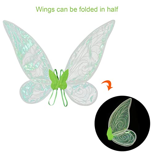 Bagalqio Ali di Fata per Bambine Ali di Farfalla con Spallacci Elastici Scintillanti Trasparenti Pieghevoli Colorati Halloween Dress Up Ali angolari Cosplay Rosa Blu Bianco Verde