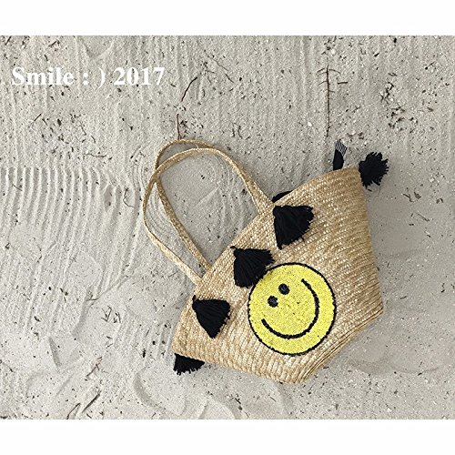 BAGEHUA tessute a mano borse di paglia tessuta faccia sacchetto Holiday borsa da spiaggia Rattan borsetta il volto sorridente di borsa di paglia