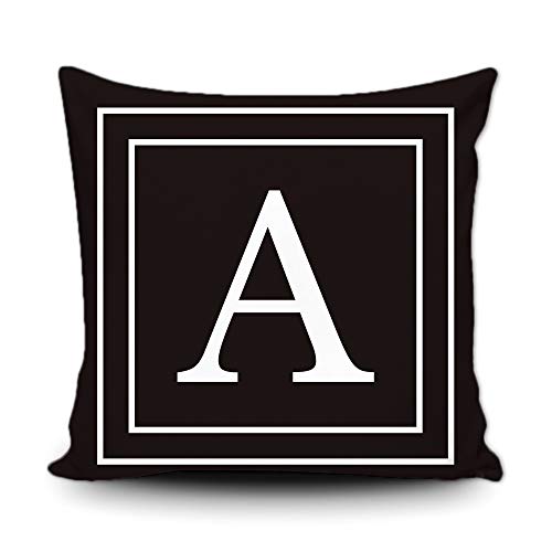 Bageyou - Federa per cuscino con lettere bianche e monogramma A e righe con lettere dell'alfabeto inglese, decorazione quadrata, per letto e divano, 45 x 45 cm, stampa fronte/retro