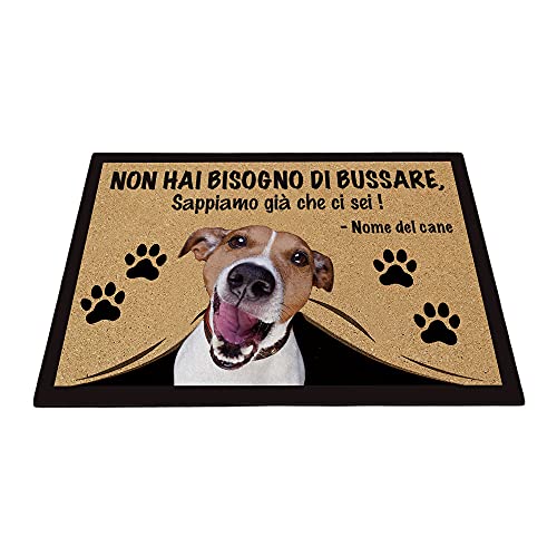 BAGEYOU Zerbino Personalizzato con il mio Cane Amore Jack Russell Terrier Non Hai Bisogno Di Bussare Sappiamo già Che Ci sei Tappetino 60 x 40 cm