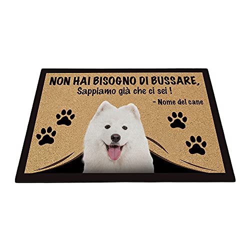 BAGEYOU Zerbino Personalizzato con il mio Cane Amore Samoiedo Non Hai Bisogno Di Bussare Sappiamo già Che Ci sei Tappetino 70 x 45 cm