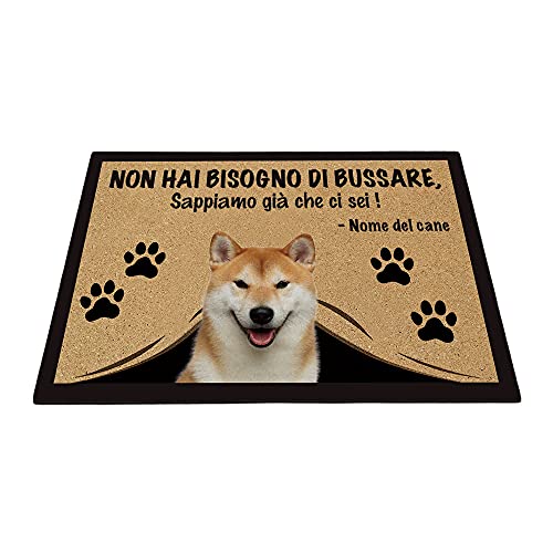 BAGEYOU Zerbino Personalizzato con il mio Cane Amore Shiba Inu Non Hai Bisogno Di Bussare Sappiamo già Che Ci sei Tappetino 60 x 40 cm