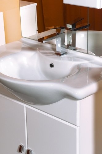 Bagno Italia Mobile Arredo Bagno da cm 75 bianco lucido con lavabo in ceramica e specchio Mobili 1 l