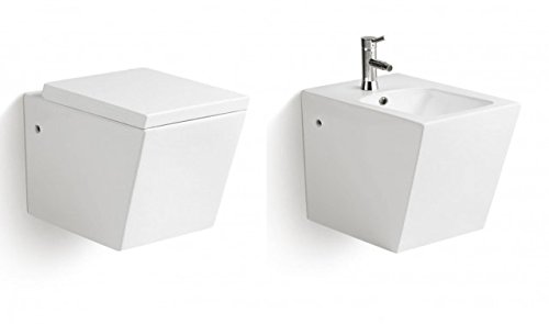 Bagno Italia Sanitari Vaso WC e Bidet sospeso moderno squadrato ceramica Bagno Italia I