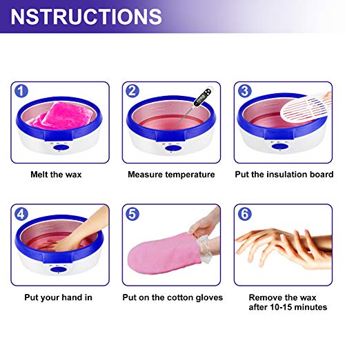 Il riscaldatore di paraffina favorisce il rinnovamento della pelle: la cera di paraffina riscaldata rilascia calore per ammorbidire e levigare la pelle secca, screpolata, ruvida o squamosa. Il bagno di paraffina viene fornito con cera di paraffina arricchita per idratare e rinnovare la pelle.