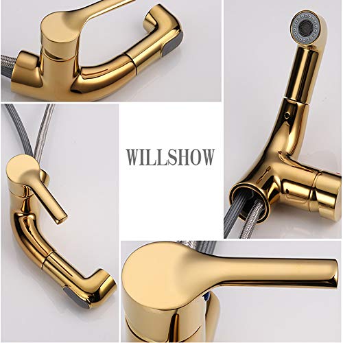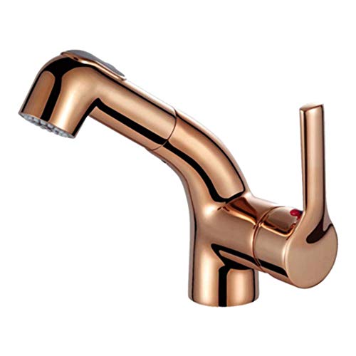 TAN Bagno Rubinetto in Ottone Massiccio Bagno Pull-Down Rubinetto Bolla d'Acqua Singola Maniglia del Rubinetto Compact,Rosegold