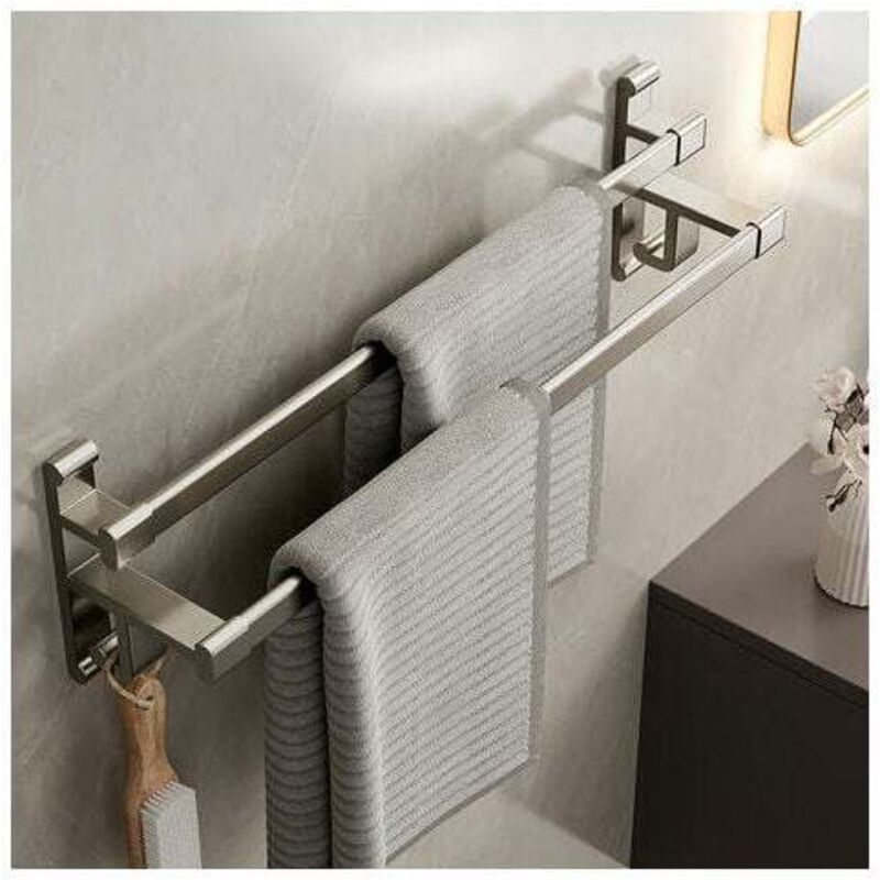 Facile da installare: il portasciugamani è facile da installare, nessuna perforazione, nessun attrezzo richiesto e nessun danno al muro. Se stai cercando un portasciugamani elegante, resistente, bello e semplice da installare, questa è la soluzione perfetta. Si prega di assicurarsi che la superficie di questo portasciugamani autoadesivo sia liscia e piatta, come piastrelle, pareti, vetro, metallo, specchio piatto, marmo, superficie piana in PVC, ecc. [Il portasciugamani senza trapano è realizzato in alluminio di alta qualità che è resistente alla corrosione, durevole e mantiene la sua finitura. Rimane intatto per anni, anche in ambiente umido. Asciugatura rapida Mantiene puliti gli asciugamani da bagno e previene la proliferazione batterica. È perfetto per l'uso in bagni, cucine, ecc. 【Potente】 Non è necessario praticare fori o altri strumenti, basta staccare uno strato del cuscinetto adesivo e incollarlo su una parete liscia. Il retro adesivo è altamente adesivo e può sostenere fino