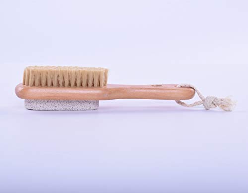 Bagno con setole naturali di cinghiale e manico antiscivolo, lunghezza manico curvo della doccia scrubber, legno pennello, spazzola per il corpo a doppio uso per rimuovere la pelle morta, esfoliante, massaggiante